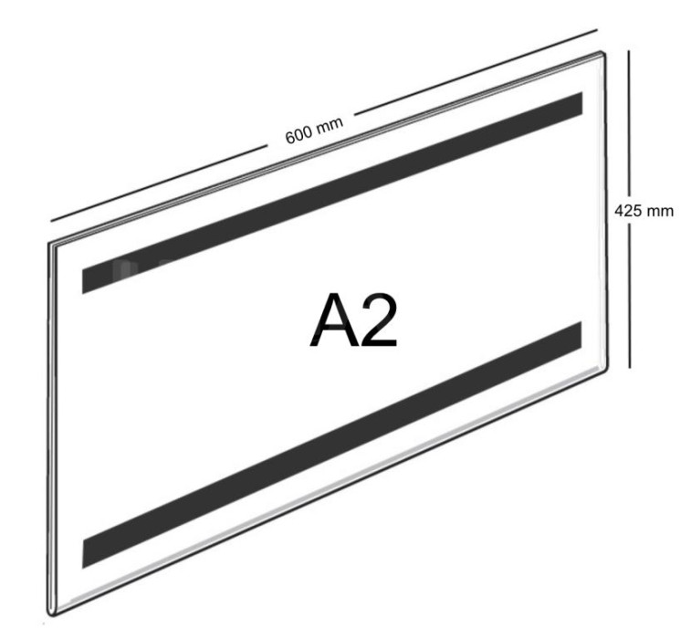 Kapsa na 1 popisku je vyrobena z kvalitního plexiskla tloušťky 2 mm s UV ochranou, ohnutím do "V" s ohybem - základnou po delší straně, pro vložení 1 ks plakátu (jmenovky, nabídky, cenovky). Kapsa je ze zadní strany magnetem. Vložené jmenovky (nabídky, ceníky) lze pak jednoduchým způsobem aktuálně měnit. Ideální pro jmenovky na dveře, obrazové "MENU" v restauracích, aktuální nabídky CK, nabídky nemovitostí RK, či jiné. Kapsa je na výšku i šířku větší o 5 mm než formát vkládaného papíru. Orientace kapsy na šířku. Rozměry v mm.