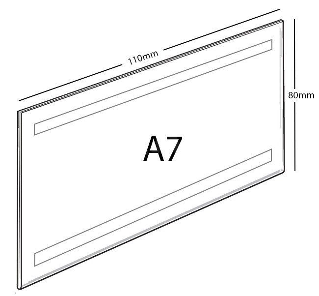 Kapsa na 1 popisku je vyrobena z kvalitního plexiskla tloušťky 2 mm s UV ochranou, ohnutím do "V" s ohybem - základnou po delší straně, pro vložení 1 ks plakátu (jmenovky, nabídky, cenovky). Kapsa je ze zadní strany opatřena čirou samolepkou. Po odstranění ochranné (červené) fólie se lepí na čistý, odmaštěný a hladký podklad (dveře, sklo atd.). Vložené jmenovky (nabídky, ceníky) lze pak jednoduchým způsobem aktuálně měnit. Doporučujeme použití v interiéru pro jmenovky na dveře, obrazové "MENU" v restauracích, aktuální nabídky CK, nabídky nemovitostí RK, či jiné. Kapsa je na výšku i šířku větší o 5 mm než formát vkládaného papíru. Orientace kapsy na šířku. Rozměry v mm.