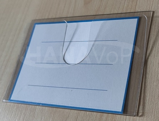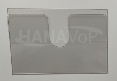Plastový pvc držák typu 001 ( „U“kapsu) vyrábíme tepelným tvarováním z čirého PVC tl. 0,7mm. Materiál je pružný a pevný v ploše. Přední strana má průhmat , je "samosvorná" a po vložení kartonu se přitáhne zpět k zadní straně. Použitý materiál při nižších teplotách blízkých 0st.C křehne - proto doporučujeme použití v interiéru. (dodáváme bez předtištěného kartonu.)