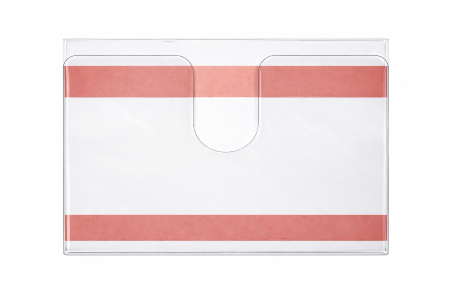 Popis: držák typu 001 „U“kapsa - S čirou samolepkou - u výsek